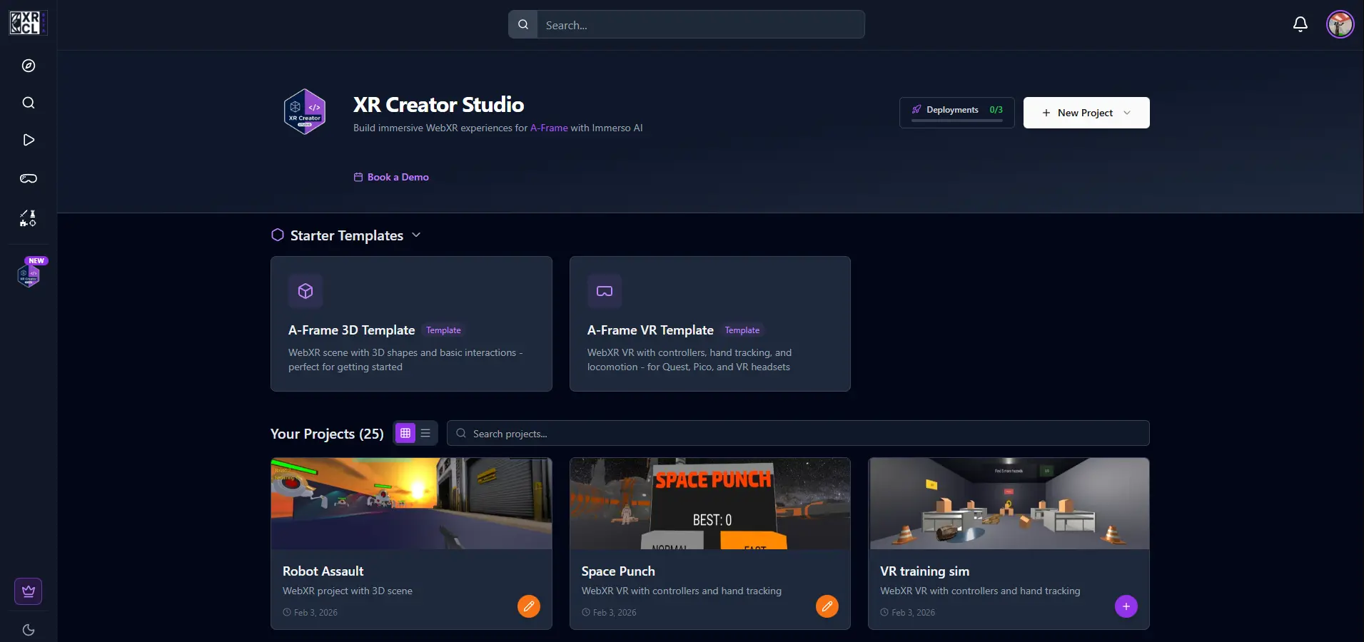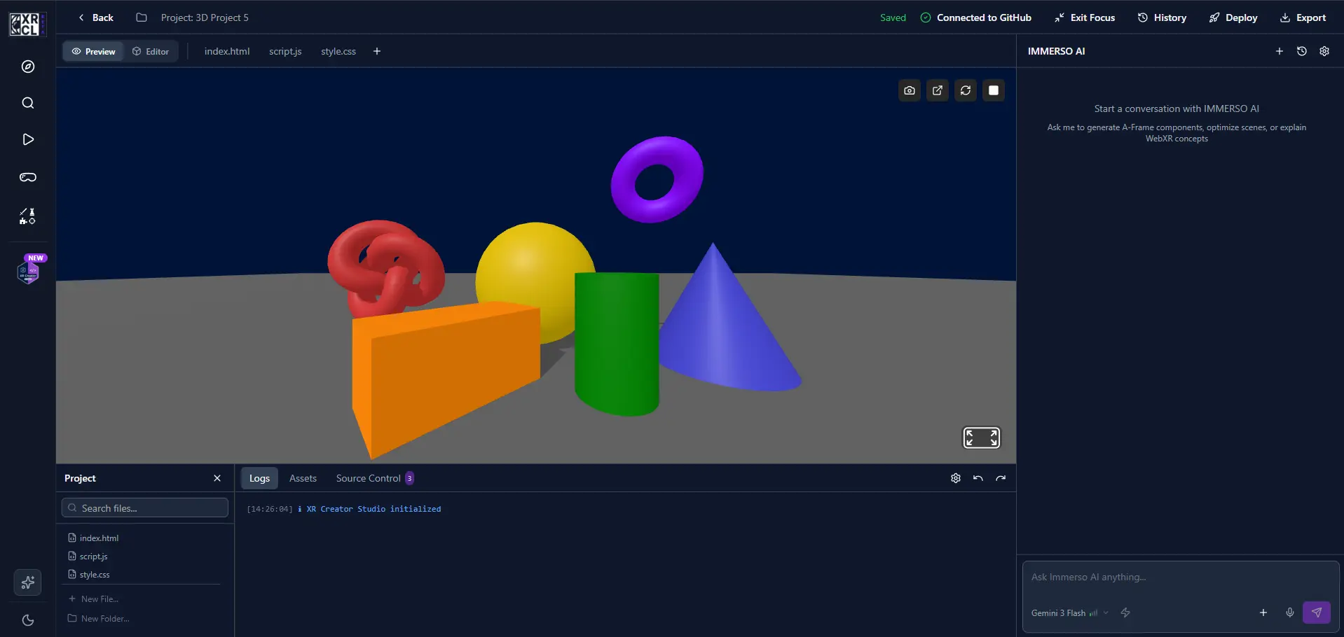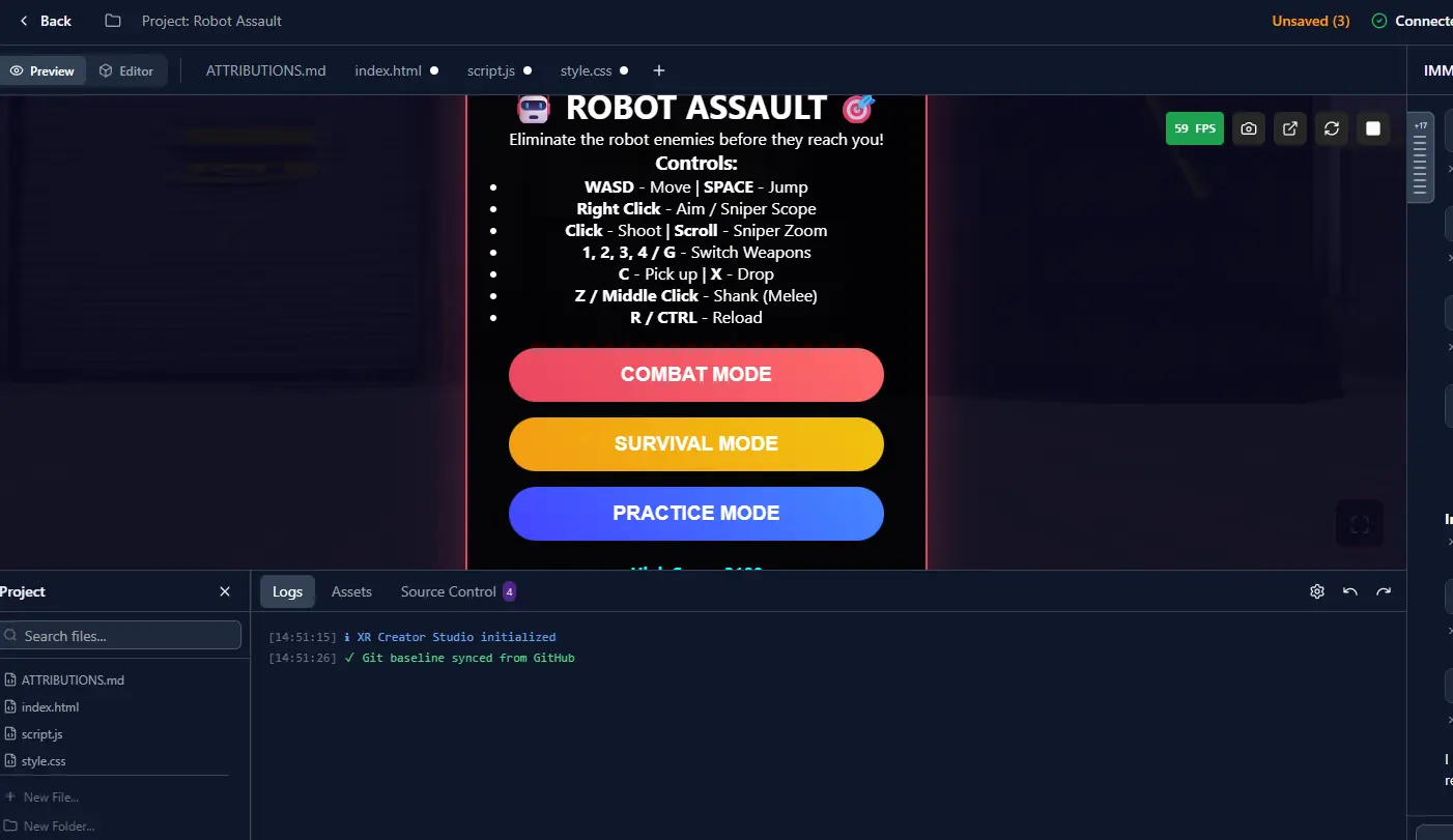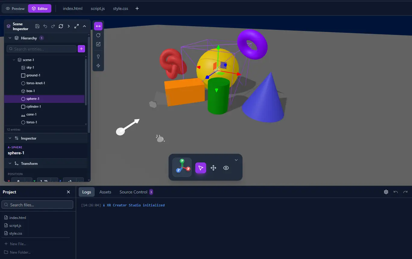 The centerpiece of v2.5 is the XR Creator Studio β a complete browser-based development environment for building A-Frame WebXR experiences. Think "Cursor for XR" or "Replit meets VR."