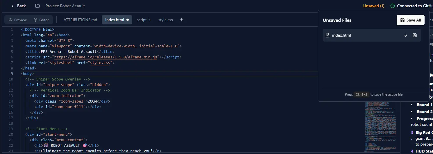 - Live Preview Panel β See your A-Frame scene update in real-time