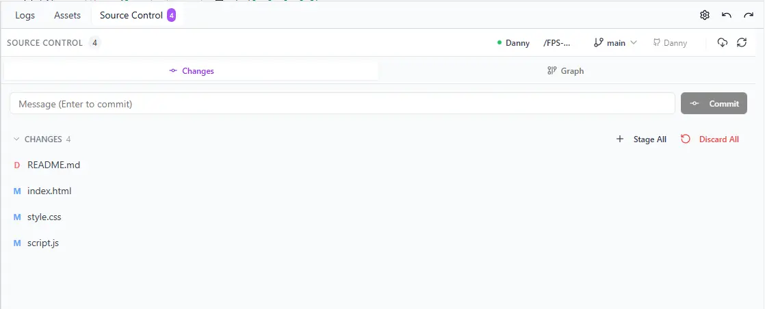 - Source Control Panel β Visual diff, stage changes, and commit messages